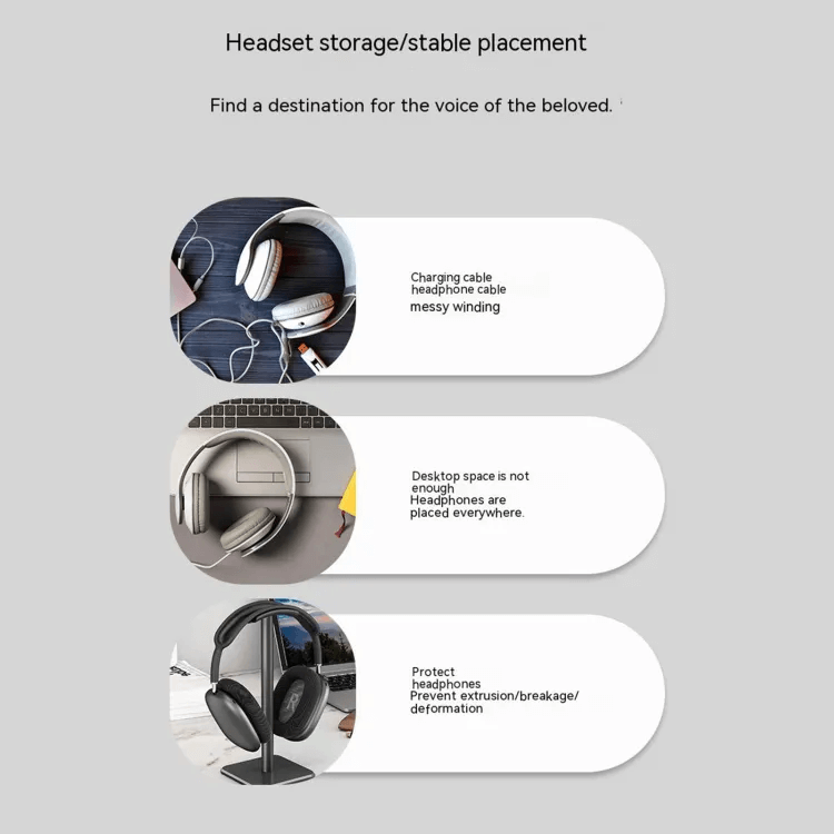The sleek, minimalist headphone stand is designed to complement modern spaces, providing a stable and stylish home for your headphones. Made from durable materials, it features a stable base and a cushioned headband rest to protect your headphones from damage, ensuring your audio gear is always organized and easily accessible.
