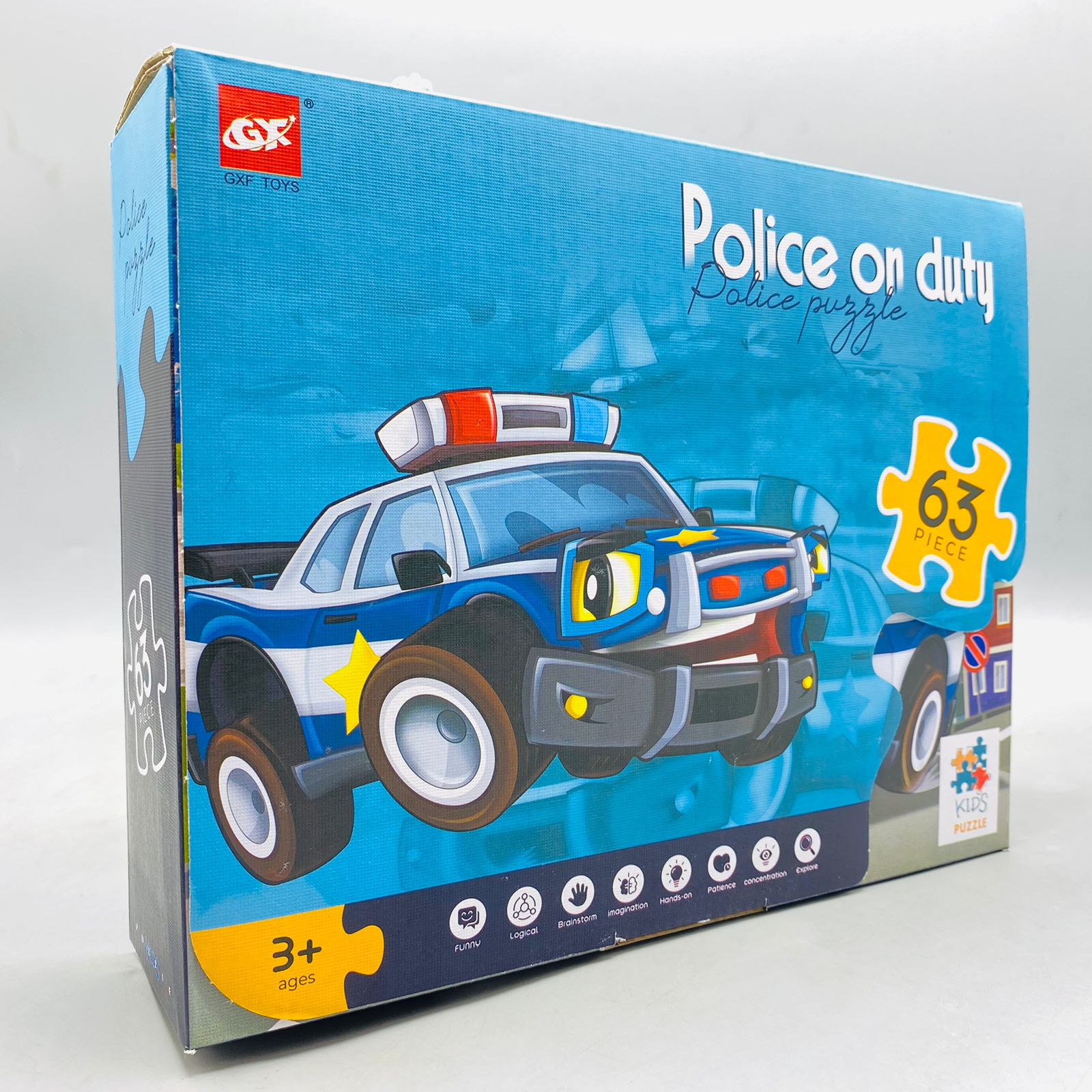 The Police On Duty Puzzle features 63 vibrant pieces that immerse children in an exciting world of law enforcement. This engaging puzzle showcases police officers in action, complete with patrol cars, a police station, and various community scenes. Perfect for developing fine skills and problem-solving abilities, it encourages imaginative play while teaching kids about the important role of police in keeping communities safe. Easy to handle and assemble, it offers hours of fun for young puzzle fan.